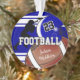 PLEASE READ BEFORE ORDERING. Featuring a Navy Blue and White Football Ornament ready for you to personalize. A great holiday gift for a football player, football fan, football coach or football enthusiast. 📌 To move a group of text at the same time. Step 1 - click the first word you want to change holding the "SHIFT" button on your computer Step 2 - then click the last Text / Graphic in the row -this will highlight all the text at the same time so you can move the word or group of text and graphics or use the "Control" button on your computer to click on one area (Text or Graphic) at a time to highlight. ✔NOTE: ONLY CHANGE THE TEMPLATE AREAS NEEDED! 😀 If needed, you can remove the text and start fresh adding whatever text and font you like. 📌If you need further customization, please click the "Click to Customize further" or "Customize or Edit Design" button and use our design tool to resize, rotate, change text colour, add text and so much more. ⭐This Product is 100% Customizable. Graphics and / or text can be added, deleted, moved, resized, changed around, rotated, etc... ⭐99% of my designs in my store are done in layers. This makes it easy for you to resize and move the graphics and text around so that it will fit each product perfectly. 📌 (Please be sure to resize or move graphics if needed before ordering) You can also "TRANSFER DESIGN" on other Zazzle products and adjust the design to fit most of Zazzle items. (button is down on the right side of the page) This design is made with high resolution vector and/or digital graphics for a professional print. 📌NOTE: (THIS IS A PRINT. All #Zazzlemade product designs are "prints" unless otherwise stated under "About This Product" on the left side of this page) The design will be printed "EXACTLY" like you see it on the screen and on the product...so please make sure when you do your changes on the resizing of any of the graphics or text that it fits in the areas correctly and that your spelling and wording is how you like it to be in size, colour and font. If you have any questions about the "DESIGN ONLY" or need help please contact me at ✉ siggyscott@comcast.net or visit my store link: https://www.zazzle.com/store/designsbydonnasiggy (Copy and Paste) I'll be happy to help. 📌 ALL OTHER QUESTIONS (shipping, refund, the printing, the product, etc...) please contact Zazzle or the Maker ⭐DIRECTLY⭐. Thank you for the support and stopping by my store - DesignsbyDonnaSiggy. © Donna Siegrist ALL RIGHT RESERVED (This is an 🥇ORIGINAL ART DESIGN by Donna Siegrist) ⭐⭐⭐ ZAZZLE promises 100% satisfaction. If you don't absolutely love it, Zazzle will take it back! ⭐⭐⭐ 1-888-8ZAZZLE (1-888-892-9953) Phone hours: Mon - Fri: 9AM - 5PM PT (12PM - 8PM ET)