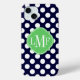 Navy Blue and White Polka Dot Pattern Monogram Case-Mate iPhone Case
