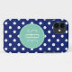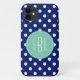Navy blue and white polka dots with aqua monogram Case-Mate iPhone case