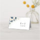 Navy Blue and White Roses Wedding Folded Place Card