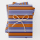 Navy blue and white stripes with burnt orange wrapping paper sheet