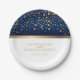 Navy Blue and White with Gold Confetti Dots Paper Plate