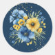 Navy Blue and Yellow Florals Gold Glitter Wedding Classic Round Sticker