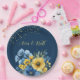 Navy Blue and Yellow Florals Gold Glitter Wedding Paper Plate