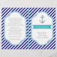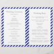 Navy blue, white stripes and anchor aqua blue nautical wedding folded wedding ceremony and party or reception program. A stylish striped pattern design with navy blue, white diagonal stripes, an anchor with a aqua blue love heart and rope and grey and white text in a frame with a turquoise banner. Contemporary yet with a vintage look in a sense. You can change background and text colour choosing from Zazzle colour chart. This classy design is a completely customizable template and is part of a wedding set perfect for a summer nautical or beach wedding. You will have to fold it in the centre. Choose only this type of paper-value as it folds well.