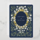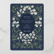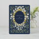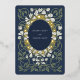This sophisticated wedding invitation features a luxurious deep navy blue background, adorned with an intricate Art Nouveau inspired gold foil motif. The elegant design is complemented by a symphony of floral elements in shades of cream and gold, creating a harmonious frame around the central oval-shaped text area. The botanical theme, a hallmark of Art Nouveau style, symbolizes growth and unity, making it an ideal choice for couples looking to add a touch of timeless beauty to their wedding stationery. The use of gold foil adds a touch of opulence, perfect for an event that celebrates love and commitment. The invitation strikes a delicate balance between classic charm and modern elegance, suitable for a range of wedding themes from traditional to contemporary.