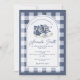 Celebrate your little one on the way with this timeless blue gingham baby shower invitation. Featuring a classic plaid background, soft watercolor baby sneakers, and an elegant arched layout, this design is perfect for a baby boy shower with a preppy, traditional feel.