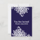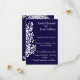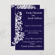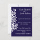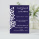 A wedding invitation featuring is a Navy Blue background with Swirl Modern Elegant inspired design with White text.