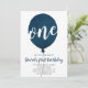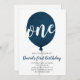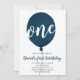 Navy Blue Balloon Boy First Birthday Invitation