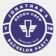 Navy Blue Beer Badge Bachelor Party Branding with grooms name and party month and year date.