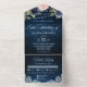 Navy Blue Blush Floral Rustic String Light Wedding All In One Invitation