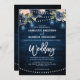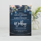 Navy Blue Blush Floral Rustic String Light Wedding Invitation
