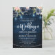 Navy Blue Blush Floral Rustic String Light Wedding Invitation