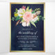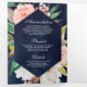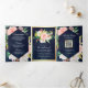 Navy Blue Blush Pink Floral Gold QR Code Wedding Tri-Fold Invitation