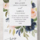 Navy Blue & Blush Pink Floral Wedding All In One Invitation