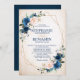 Navy Blue Blush Pink Rose Boho Geometric Wedding Invitation