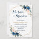 Navy Blue Blush Pink Rose Boho Geometric Wedding Invitation