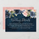 Navy Blue Blush Pink Rose Boho Wedding Details Enclosure Card