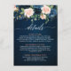 Navy Blue Blush Pink Rose Boho Wedding Details Enclosure Card