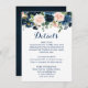 Navy Blue Blush Pink Rose Boho Wedding Details Enclosure Card