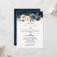 Navy Blue Blush Pink Rose Boho Wedding Invitation