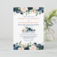 Navy Blue Blush Pink Rose Boho Wedding Invitation