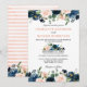 Navy Blue Blush Pink Rose Boho Wedding Invitation