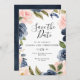 Navy Blue Blush Pink Rose Boho Wedding Save The Date