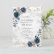 Navy Blue Blush PInk Rose Marble Floral Wedding Invitation