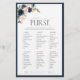 Modern, elegant bridal shower game "What's in Your Purse" featuring a bouquet of navy blue and blush pink flowers, bordered in navy blue. Personalize your questions in soft off-black, accented with beautiful modern hand lettered calligraphy. Part of a co-ordinated suite. View suite here: https://www.zazzle.com/collections/navy_blue_blush_floral_watercolor_bridal_shower-119055669272624939 Contact designer for matching products. Copyright Anastasia Surridge for Elegant Invites, all rights reserved.