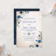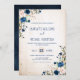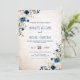 Navy Blue Blush Rose Rustic Country Floral Wedding Invitation