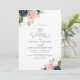 Navy blue & blush watercolor floral wedding invitation
