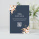 Modern wedding enclosure cards with elegant boho fall floral accents, minimalist typography design on navy blue colour background.