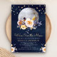 Navy Blue Boho Earthy Floral Moon Baby Shower Invitation