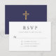 Navy Blue Boy Religious Cross Confirmation RSVP Card