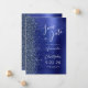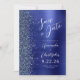 This elegant modern wedding save the date card features a navy blue brushed metal background decorated with faux diamond glitter. The customizable text combines white script and sans serif fonts. The reverse side repeats the navy blue brushed metal and glitter design.