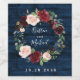 Navy Blue Burgundy Blush Watercolor Wreath Wedding Wine Label