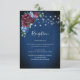 Navy Blue Burgundy Floral String Lights Wedding Enclosure Card