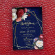 Burgundy roses greenery navy blue background gold geometrical frame floral bridal shower invitation template.