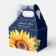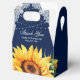 Put your bridal shower/wedding gifts into these romantic rustic navy blue floral favour boxes featuring a sunflower on a burlap background adorned with white floral lace and string lights.