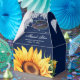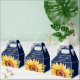 Custom navy blue wedding favour box featuring a burlap texture and sunflower flowers with string lights.