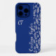 Navy Blue & Bush pink Leaf pattern monogrammed iPhone Case