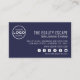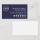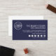 This loyalty card features a sleek, minimalist front with a navy blue background and white sans serif fonts for a clean and modern look. A spot for your logo is placed at the top left, with your business contact information clearly displayed for easy access. In the bottom right corner, there’s space for punch dots to track client visits or purchases—perfect for encouraging customer loyalty.
