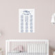 This navy blue calligraphy head table wedding seating chart poster is perfect for an elegant wedding. The white and blue design features chic rustic typography and a lovely romantic heart. This wedding poster includes enough room for up to 14 tables including a head table (about 145 guests). In addition to the placement of each guest, personalize this sign with the names of the bride and groom and the wedding date.