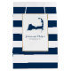 Navy Blue Cape Cod Map and Stripes Medium Gift Bag
