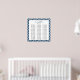 Navy Blue Chevron Wedding Seating Chart 150 Alphabetically. Elke Clarke © Available at www.zazzle.com/monogramgallery. Use the templates to fill out information BUT you must also use "customize it" and do additional editing using the spacing options in the edit menu. Zazzle DOES NOT make changes after you order. The way it looks on screen is how it will print. Change the letters and the numbers in each group if you need to. Other colors and patterns available.