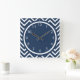 Navy Blue Chevron Zigzag Pattern Square Wall Clock