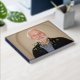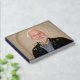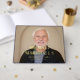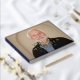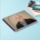 Monogrammed retirement guest book with a photo of the retiree on the cover, personalized with name and date. Name and event printed in elegant foil letters. Extra message on the back. NAVY BLUE spine and back.