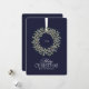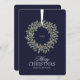 A classic navy blue Christmas card with a festive holiday wreath on the front. The year can be included or removed, and the text allows for your own family name. On the back, you can keep the elegant holiday wishes provided or replace them with your own personal message. A timeless Merry Christmas card to share joy and warmth this holiday season.