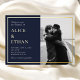 Introducing our Elegant Navy Blue Wedding Invitation, designed to capture timeless beauty. On the front, the left side features your wedding details in a sophisticated combination of serif font and classic calligraphy, while the right showcases a cherished photo. The couple's names and border are highlighted in luxurious real foil for added elegance. On the back, add another special photo for a personal touch. This invitation is ideal for an elegant wedding. Personalize yours on Zazzle and create an unforgettable keepsake for your guests!